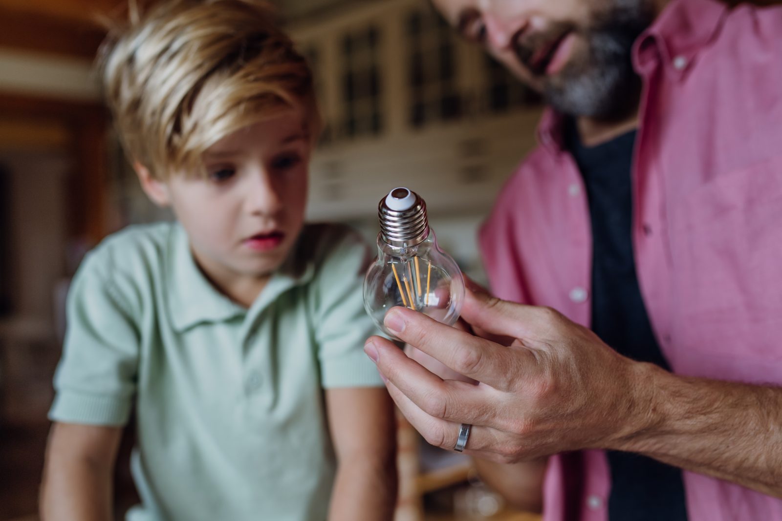 Ersetzen Sie Ihre herkömmlichen Glühbirnen durch energiesparende Leuchtmittel. Keine andere Leuchte kann es in puncto Effizienz mit der LED-Lampe aufnehmen. Sie verfügt über eine lange Lebensdauer (rund 25.000 Stunden) und verbraucht 90 % weniger Strom als Glühbirnen. LED-Lampen geben nur wenig Wärme und keine IR- oder UV-Strahlung ab. Sie sind vielfältig einsetzbar und umweltfreundlich. Eine weitere Alternative ist die Energiesparlampe. Sie benötigt 60 % weniger Strom als eine Glühbirne. Allerdings wird ihr Licht oft als weniger angenehm empfunden. Energiesparlampen enthalten zudem hochgiftiges Quecksilber, von dem im Falle eines Bruches Gefahren ausgehen. Sie müssen deshalb als Sondermüll aufwendig entsorgt werden und können nur teilweise wiederverwertet werden.